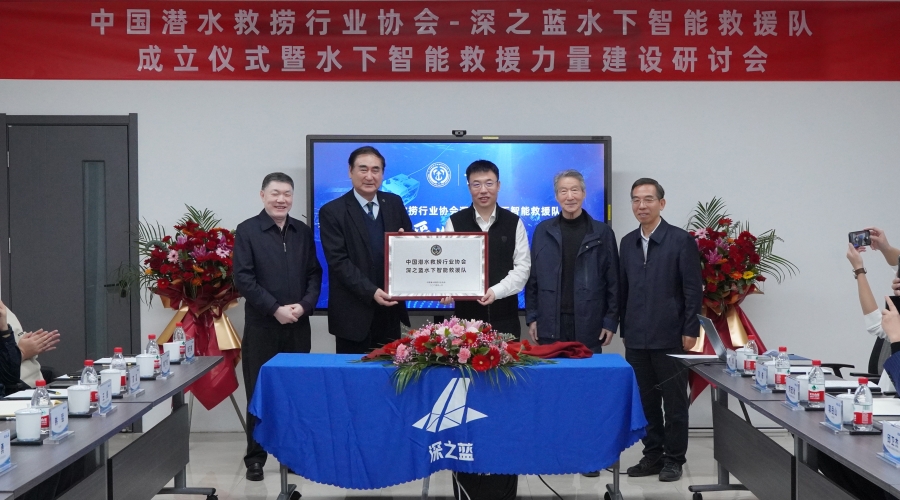 2024年1月4日,由中国潜水救捞行业协会主办、深之蓝海洋科技股份有限公司承办的“中国潜水救捞行业协会—深之蓝水下智能救援队成立仪式暨水下智能救援力量建设研讨会”在天津隆重举行。